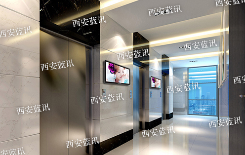 电梯间安装西安蓝讯32英寸或者22英寸壁挂液晶广告机或者19英寸感应液晶广告机,主要用于播放广告各类广告信息,增加广告收入。西安蓝讯19英寸感应广告机优势在于设备感应到有人活动的时候会在3秒开始播放广告机信息,当电梯处于静止状态,无人乘坐时,设备检测不到人群活动会在3秒内黑屏待机运行。
